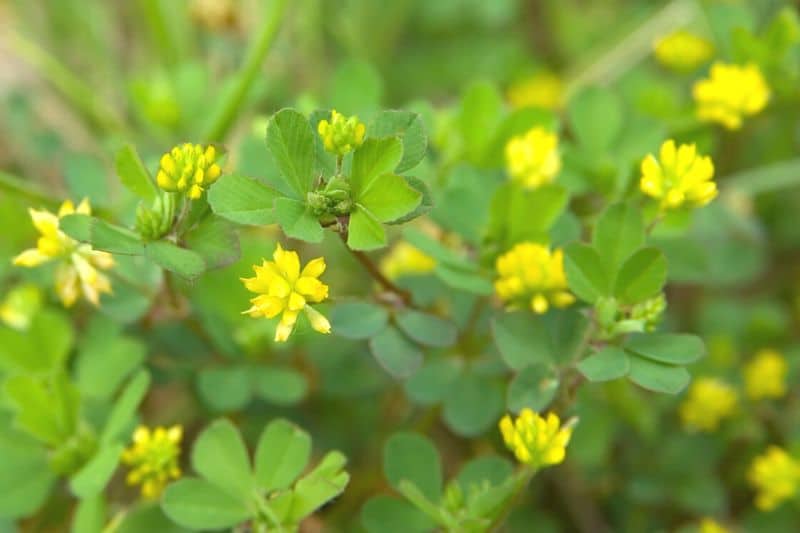 - Blütezeit: ab Mai, typische Kleeblüten, klein