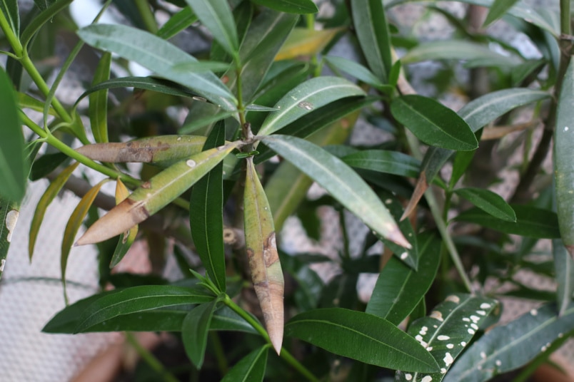 Hinweis: Erfrorener und vertrockneter Oleander ähneln sich. Gehen Sie daher sicher, dass Ihr Oleander nicht nur unter Wassermangel leidet.